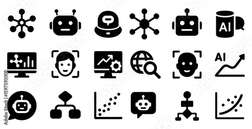 Ai and technology icons set – solid, filled, digital and tech symbols