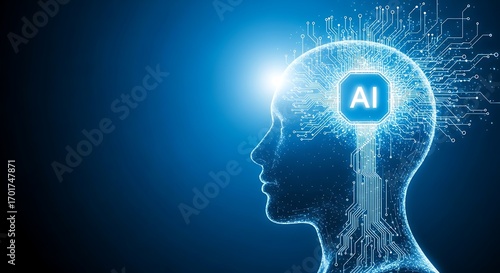 AI brain concept with glowing circuits and AI text, representing artificial intelligence