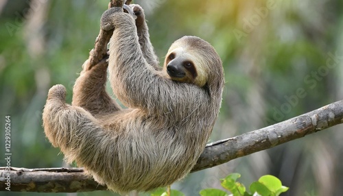 AI generated, animal, animals, mammal, mammals, biotope, habitat, a, individual, foraging, wildlife, three-fingered sloth, gymnastics on a tree, (Bradypus variegatus), brown-throated sloth, South America, Brazil, AI generated, South America