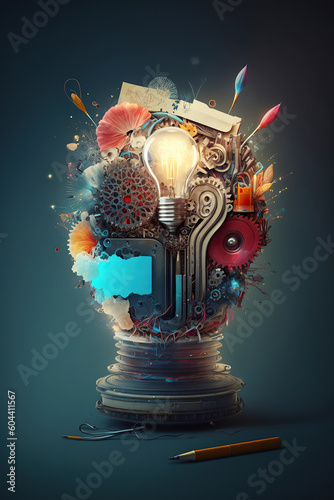 Ai generated illustration of stationery form a light bulb,creative thought process