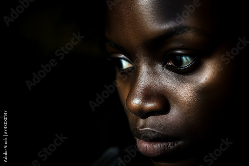 AI generated illustration of a close-up portrait of a young African-American girl with glowing skin