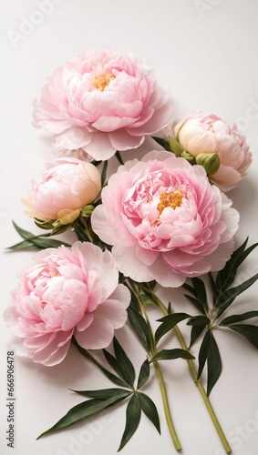 AI generated illustration of beautiful delicate pink peony flowers on the white background