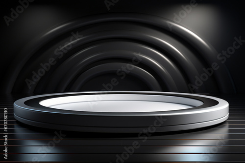 Ai Generative photo white light round podium and black background for mock up realistic image