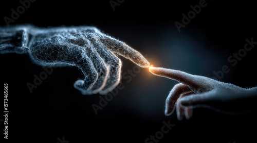 AI, Hands of robot and human touching. Big data network connection, Science and artificial intelligence technology, innovation and futuristic.