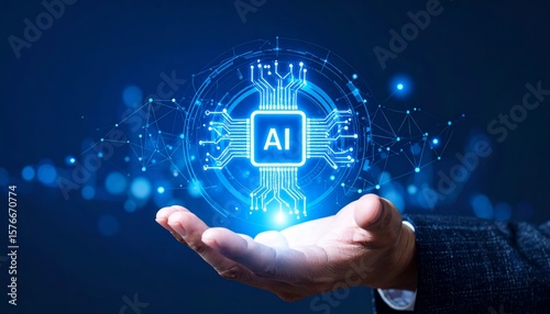 AI Technology and Digital Innovation with Artificial Intelligence Concept Hand and AI Data Future.
