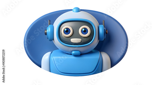 AI-Powered Chatbot concept Friendly cartoon robot with a blue color scheme and cheerful expression, set against a circular background.