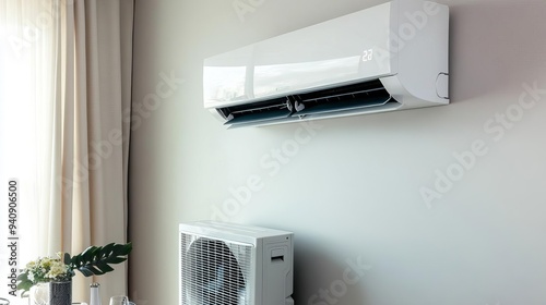 Air conditioner cooling a sunlit dining area, home comfort, refreshing space