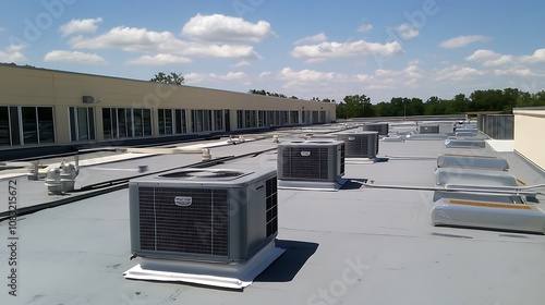 Air Conditioning Units on a Flat Roof of a Building