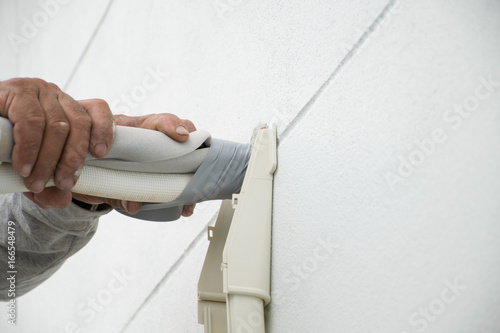 .Air repair technicians are installing air conditioning.