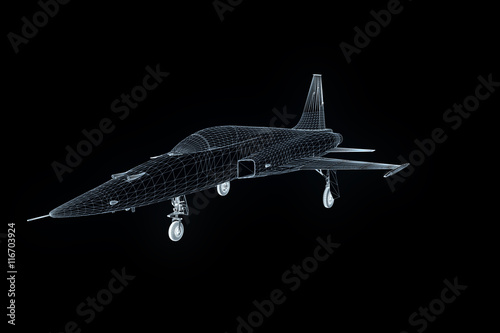 Airplane in Hologram Wireframe Style. Nice 3D Rendering