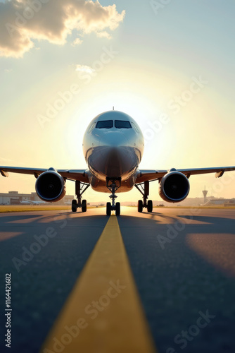 Airplane on Runway at Sunset, Airport Environment, Flight Preparation