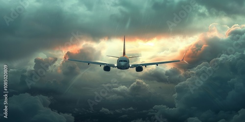 Airplane Soaring Through Dramatic Skies: A Breathtaking Flight Above the Clouds