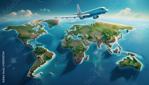 airplane with world map on blue background