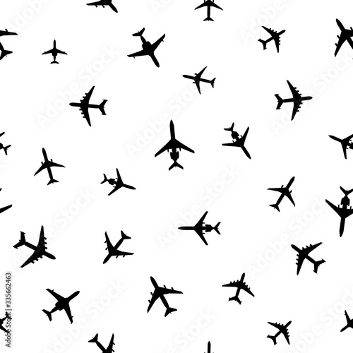 Airplanes silhouettes on white. Abstract seamless pattern. Vector EPS10.