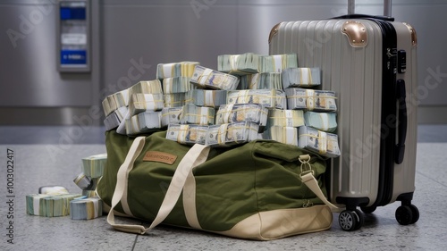 Airport Scene with Money-Filled Duffle Bag for Economic Articles