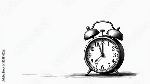 Alarm Clock, Black and White Illustration