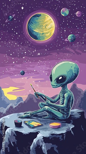 Alien Artist Paints Cosmic Landscape From Mountaintop