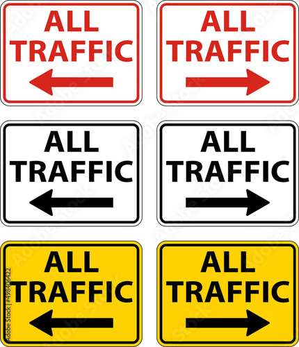 All Traffic Left Arrow Right Arrow Sign On White Background
