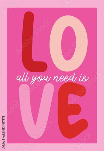 All You Need Is Love Vector Poster, Bold Typography on Vibrant Pink Background.
