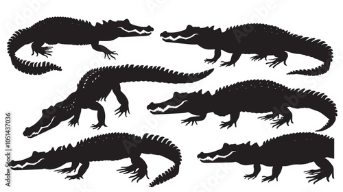 Alligators silhouette isolated in White background