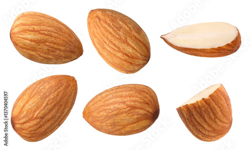 Almond nuts, half and piece isolated, transparent PNG, PNG format, cut out, Collection, set