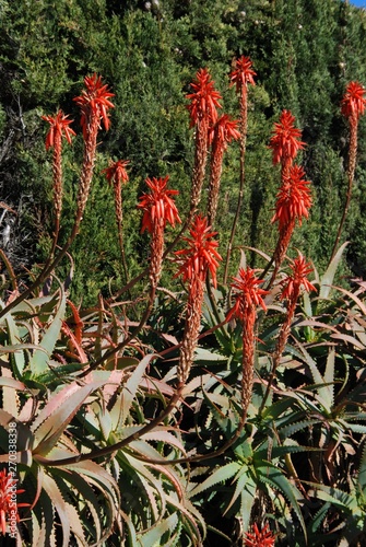 Aloe Arborescens Variegata in full bloom, Spain.