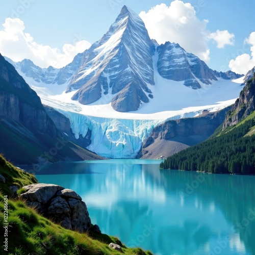 Alpine peaks and glaciers create an icy landscape, alpine, scenery, mountains