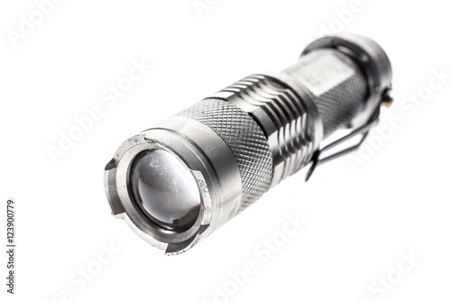 Aluminium metal LED flashlight torch isolated on white backgroun