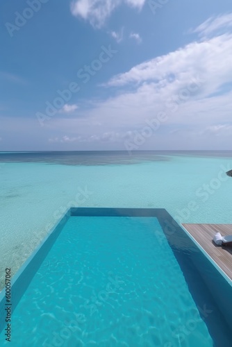 Amazing drone view of the beach and water with beautiful colors. Paradise scenery water villas with amazing sea and beach, tropical nature. summer vacation.