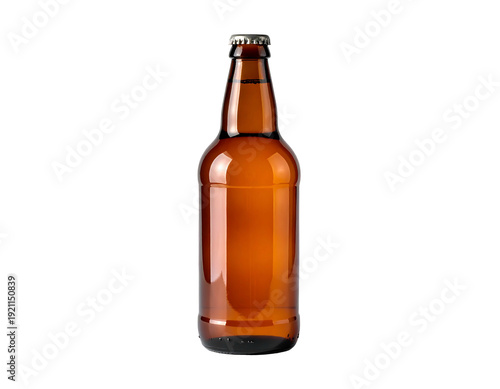 Amber Glass Beer Bottle Isolated on White Background.