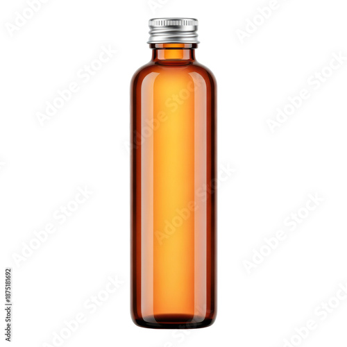 Amber glass bottle with silver screw top cap isolated on transparent background