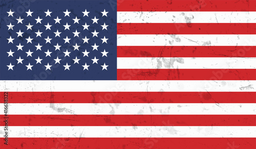 American flag. Grunge old flag USA isolated white background.