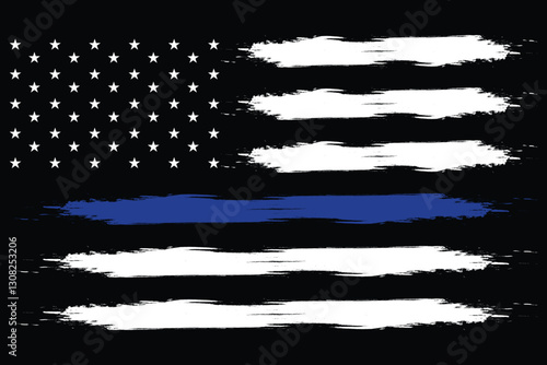 American flag with a blue line, supporting law enforcement. American police flag with distressed effect.