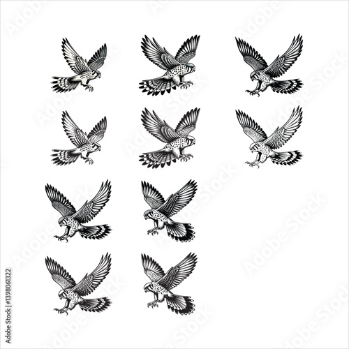 American Kestrel Swooping Down to Catch Prey – Vector Line Art