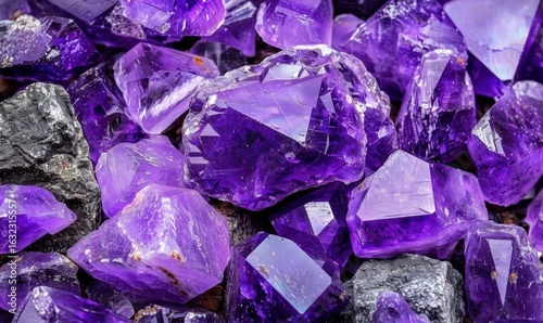 Amethyst crystal cluster raw purple gemstones and mineral specimen