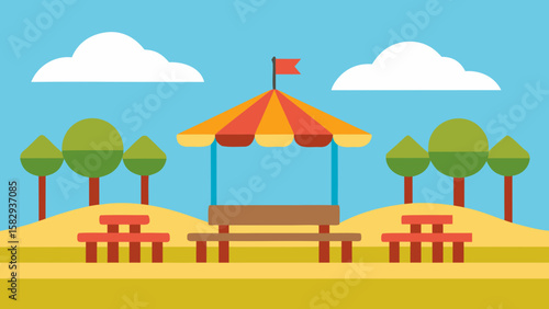 Amusement park picnic area with benches vector illustration