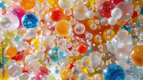 An abstract and futuristic scene featuring a cluster of colorful balls arranged in a geometric formation, with soft lighting illuminating their smooth surfaces and casting interesting shadows.