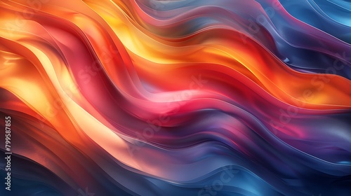 An abstract background featuring chromatic waves with overlapping diagonal layers in a gradient from warm to cool colors, accentuated with dynamic silver metallic lines