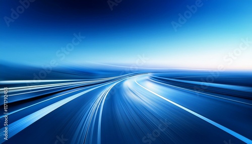 an abstract blue background with blurred stripes and light stripes on the horizon the lines resemble a highway with a focus on smooth curves that represent technology and communication concepts