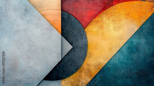 An abstract composition featuring geometric shapes and rich colors, perfect for modern design projects and creative backgrounds.
