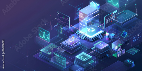 An abstract concept art of technology background with healthcare icon, digital locks and keys surrounding confidential records symbolizing the unbreakable security and privacy