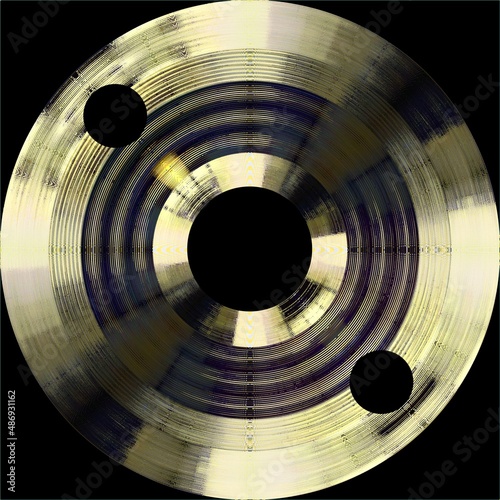 An abstract illustration featuring a golden circle on a black background