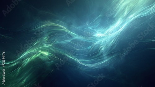 An abstract image featuring flowing waves of blue and green hues, evoking a sense of tranquility and depth. Product presentation background.