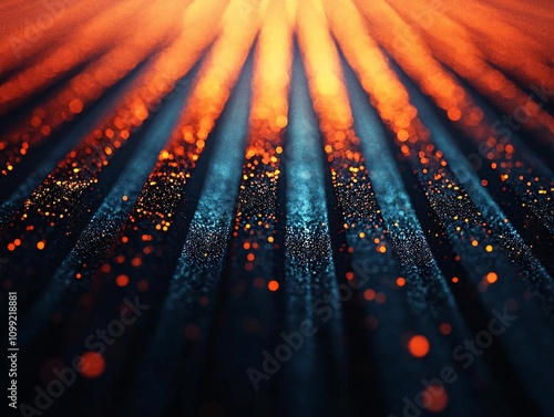 An abstract image showcasing vibrant orange and blue streaks emitting a shimmering glow, evoking a dynamic atmosphere.