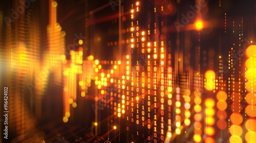 An abstract representation of a gold stock graph on a futuristic holographic display with glowing data points