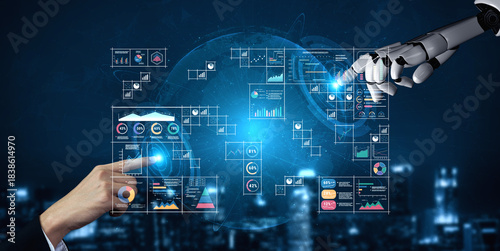 An AI powered big data visualization and business analytics grid. A complex collection of AI charts for comprehensive company reporting. Motif