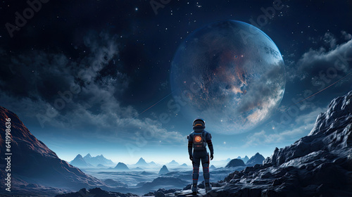 An AI-assisted astronaut exploring distant planets in search of new horizons.