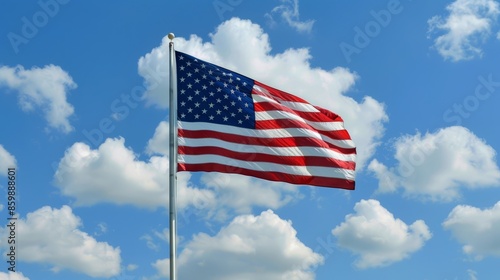 An American flag flying over a historical reenactment site, representing heritage and American pride