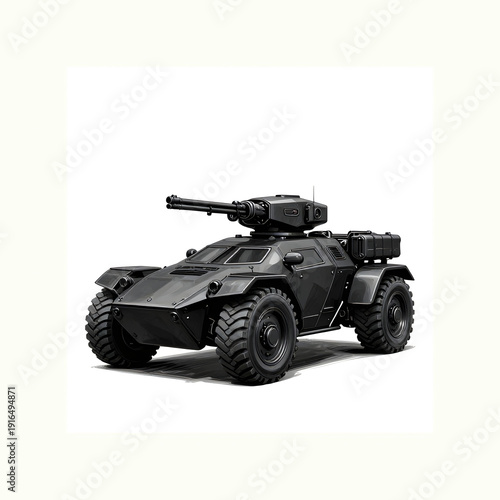 An army battle tank with a cannon on tracks. Military paint. Comic illustration.