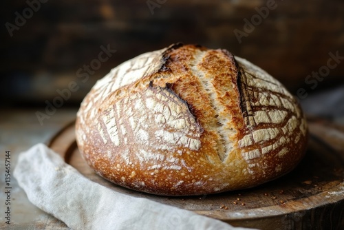 An artisan loaf of bread on cutting board. Healthy delicious food concept